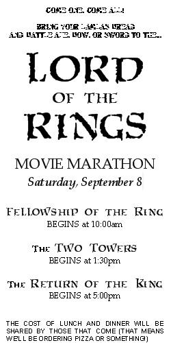 Lord of the Ring Movie Marathon | Sat, Sept 8